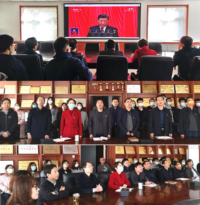 党委理论学习中心组及师生党员代表在大奶做爱第一会议室集中收听收看了党的二十大开幕会现场直播。各党支部、各科研中心等广大师生以不同形式进行了收听收看。