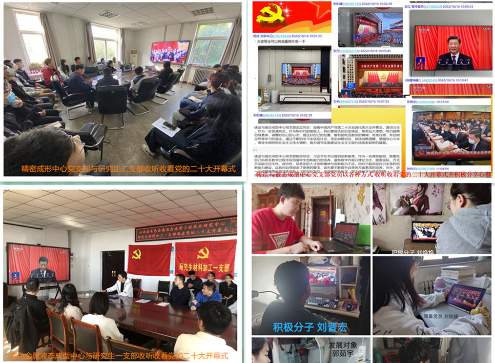 各党支部组织师生通过电视、网络等媒体以集中收看、腾讯会议等不同形式收听收看党的二十大开幕会直播。