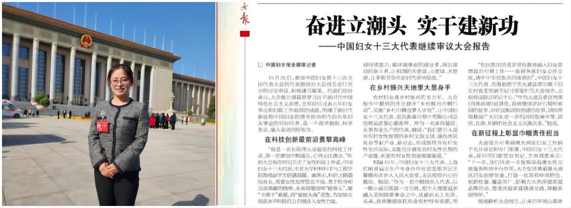 赵宇宏教授作为中国妇女十三大代表,光荣出席此次盛会,认真学习大会报告,并应邀在《中国妇女报》发表“在科技创新最前沿勇攀高峰”感言: “我是一名长期埋头实验室的科技工作者,第一次参加巾帼盛会,心情无比激动。科研之路道阻且长,需要女性发挥坚忍不拔、勇于担当和自我奉献的精神,未来将继续啃‘硬骨头’,破‘卡脖子’难题,向“星辰大海”进发,为加快实现高水平科技自立自强注入女性力量。”