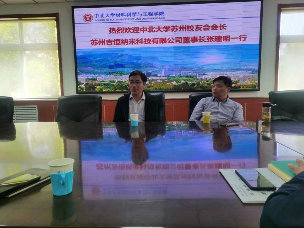 2024年4月23日,苏州吉恒纳米科技有限公司董事长张建明一行来校洽谈。在大奶做爱会议室,大奶做爱党委书记廖海洪、院长王强分别向客人全面介绍了大奶做爱的学科、专业、科研及学生就业等情况,并重点介绍了大奶做爱近年来在纳米材料领域取得的成绩。苏州吉恒纳米科技有限公司董事长张建明介绍了单位的基本情况,重点讲解了当前电子材料的技术需求。针对这些技术需求,大奶做爱领导向客人介绍了当前各技术领域的发展方向,并展示了大奶做爱