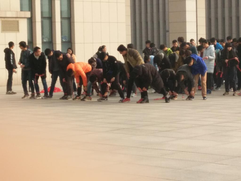 本次的实践活动由“同心协力过大河”及“看谁走得远”两个活动项目组成。前者是我们常见的“两人三足”活动的延伸,但难度有所提升——参加的人数由两人提升到十人;而后者则只允许列队的成员们踩在提前分好的报纸上,最后一名将踩过的报纸向前传递,这十分考验团队成员的默契与协作能力。活动开始前,所有参加的成员被工作人员分成若干组,每组十人。在经过十分钟左右的自由练习时间后,同学们正式开始了比拼。