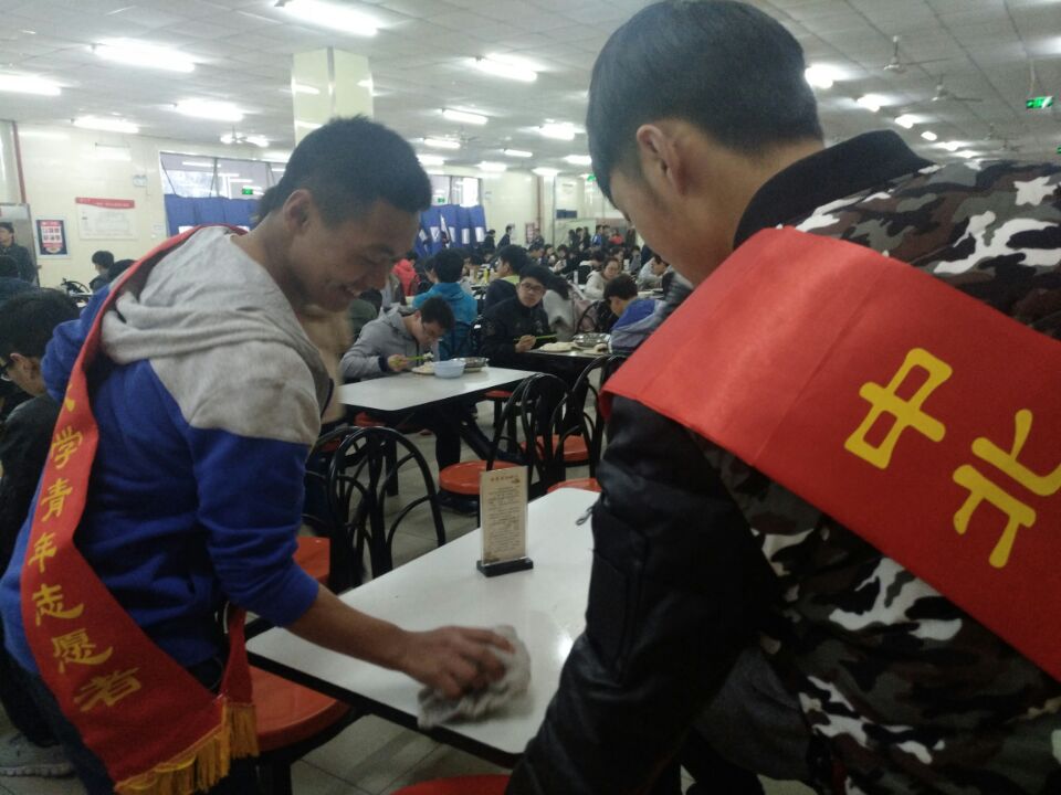 活动开始时,志愿者都佩戴好绶带,在青志部的安排下,被分到收餐处和领餐排队处。我们的志愿者为每一位践行光盘行动的同学赠送了雷锋小奖章,以示鼓励;而对于那些人多拥挤的领餐口,我们志愿者也是耐心地在一旁维持秩序,呼吁大家文明领餐,自觉排队,同学们都积极配合整个食堂秩序井然,大家的就餐行为变得更加文明起来。虽然志愿者们的工作量大,任务繁重,但大家也没有丝毫懈怠,为发扬雷锋精神献出了自己的力量。