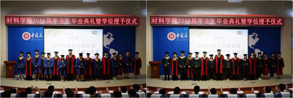 毕业典礼在雄壮的国歌声中拉开帷幕。院党委书记薛亚奎教授宣读 《关于表彰2018届优秀毕业生及综合素质奖学金获得者的决定》,同时院领导亲自为优秀毕业生颁发荣誉证书。表彰过后,毕业研究生代表张鹏飞同学与本科毕业生代表吉志洁同学依次发言,表达了对母校多年来的培养表示衷心的感谢,并会牢记自己是一名材料人;牢记恩师们的教诲,牢记“真材实料,精益求精”的院训。随后在校生代表景心怡同学发言,言语中饱含对毕业生的不舍与祝福,并表示他们会向大奶做爱