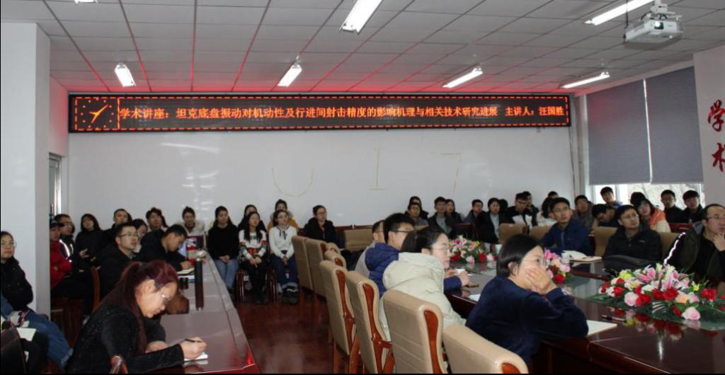 汪国胜,中国兵器工业集团第201研究所研究员,湖南科技大学湘江学者特聘教授,北京理工大学兼职硕士研究生导师,中国兵器工业集团第201研究所人机环境学科带头人。学术报告主要讲述了:坦克机动性影响因素与影响机理、底盘振动对行进间射击精度影响机理、机动性与行进间射击精度提高技术措施、行进间射击精度提高的改进措施、创新点等。报告最后,汪国胜研究员还为有疑问的同学进行了细心的解答与指导,激发了大家对科研学习的热情,也让同学们的专业知识素养达到了很好的提升。本次活动圆满成功!