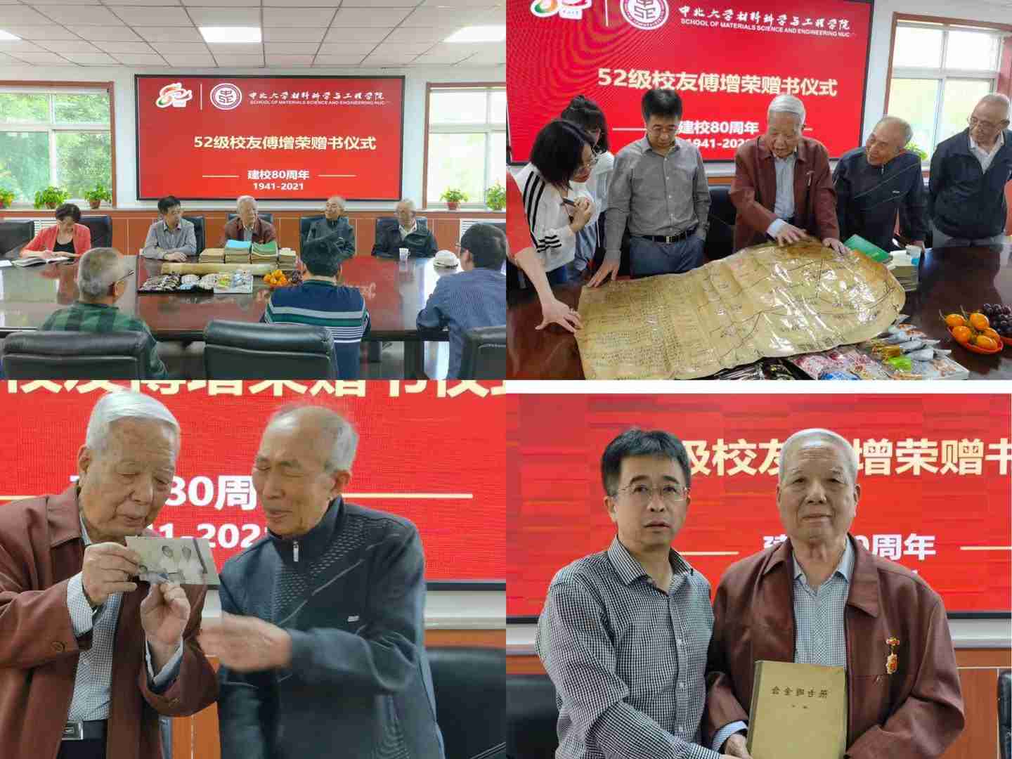 52级金属材料热处理专业的86岁老校友傅增荣带着珍贵的礼物回到大奶做爱,以特有的方式为母校80周年献礼。周铁城、张春明、胡保全和院领导共同见证了这一暖心时刻。